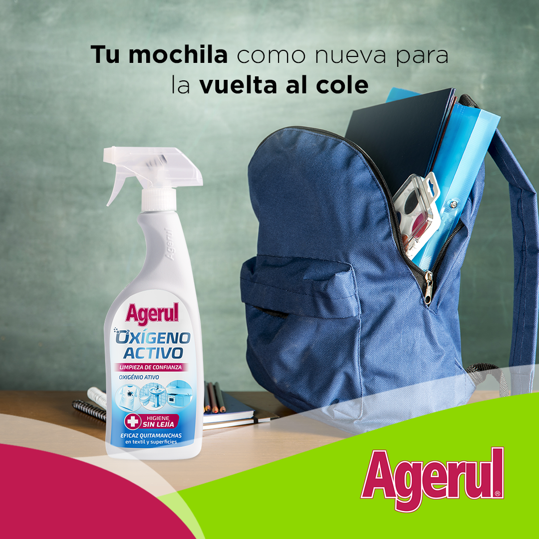 Estamos seguros de que nuestro oxígeno activo va a ser tu mejor aliado esta vuelta a la rutina para las manchas más difíciles de eliminar de la ropa escolar de los peques o de los uniformes y ropa de trabajo que uses, pues este normalmente suele ser uno de los rompecabezas que más atormentan la limpieza en el día a día. Además, con este súper limpiador, podrás acabar con la suciedad de muchos otros textiles como mochilas o estuches escolares.